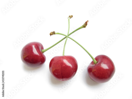 cherry, sweet, food, fruit, fruit, plant, plant, berry, berry, closeup, white, white background, isolated, red, cherry tree, 4, center, composition, gean, merry, market, market, object, object, eat, eating, appetising, tempting, cross, crossing, figure, three