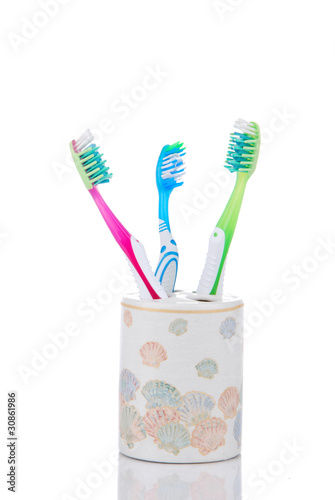 Three dental toothbrushes decorative glass