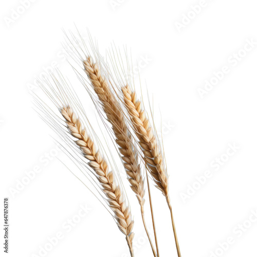 three dry ripe autumn spikelets of wheat, png file of isolated cutout object on transparent background.
