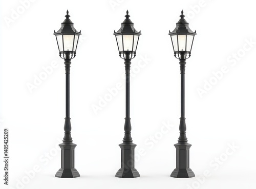 lamp-post, lamp, light, post, black, elegant, classic, design, street light, lighting, tall, metal, three, set, illustration, rendering, three-dimensional, model, vintage, antique, traditional, ornate, decorative, column, pillar, fixture, illumination, glow, bright, dark, shadow, background, white, isolated, style, aesthetic, architecture, urban, city, town, park, pathway, road, exterior, landscape, scene, image, visual