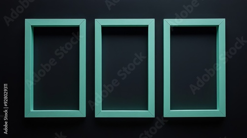 Three mint green picture frames on black background