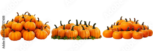 Three Pumpkin Piles, Autumn Harvest Composition, Isolated on White Background, Pumpkins, Autumn, Thanksgiving