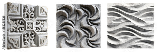 Three Textured Concrete Tiles - Geometric and Organic Designs