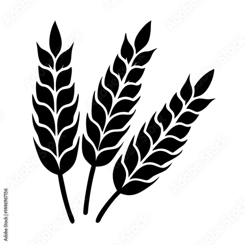 Three Wheat Stalks Black and White Graphic Design Element Illustration