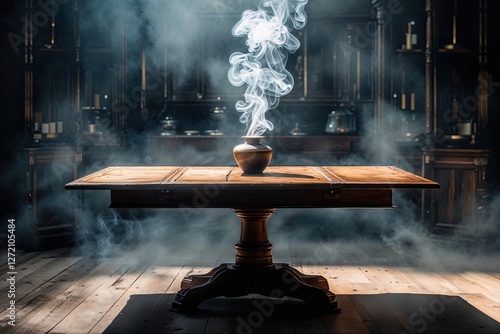 Timeless Wooden Table in Soft Smoke and Deep Shadows