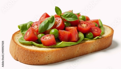 Toasted bread with tomato slices watercolor depiction of vegetarian fare