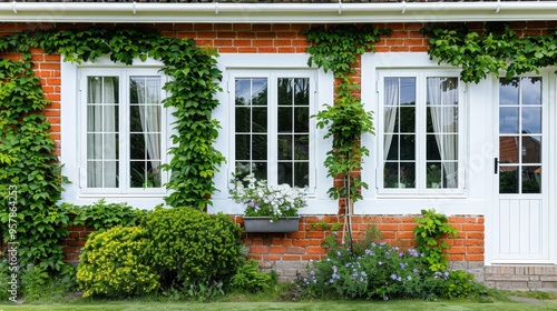 traditional, english, house, ivy, covered, red, brick, wall, white, framed, window, vintage, architecture, bungalow, heritage, classic, garden, old, historic, picturesque, quaint, charming, rural, authentic, home, property, estate, leafy, cosy