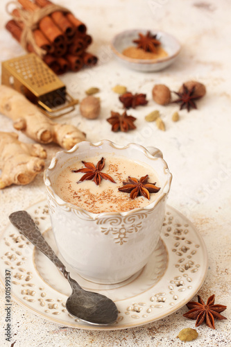 anise, autumn, background, beverage, black tea, breakfast, brown, cardamon, christmas, cinnamon, cinnamon stick, cup, drink, dry, food, fragrant, fresh, ginger, grater, holiday, homemade, honey, hot, icing, india, masala, milk, nutmeg, organic, rustic, spice, spice, spoon, star, sugar, sweet, table, tasty, tea, traditional, warming, white, winter