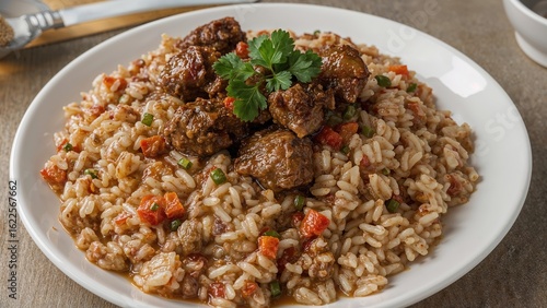 Traditional spiced rice with meat, a popular dish across the Arabian Peninsula