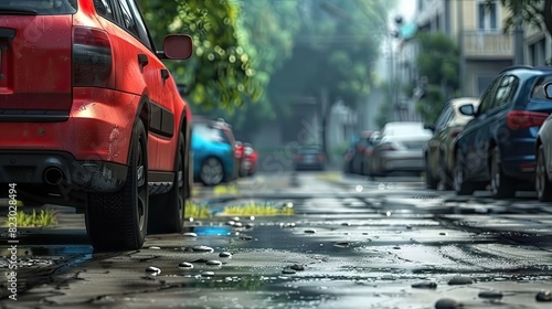 rain, serenity, calmness, natural beauty, red car, parking, waiting, building, background, silence, witness, quiet, peaceful, calm, soothing, atmosphere, rainy day, city landscape, contrast, harmony