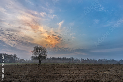 landscape, sky, tree, field, nature, cloud, grass, sunset, tree, sunrise, cloud, blue, fog, forest, horizon, morning, green, summer, meadow, sun, view, countryside, autumn, mist, rural