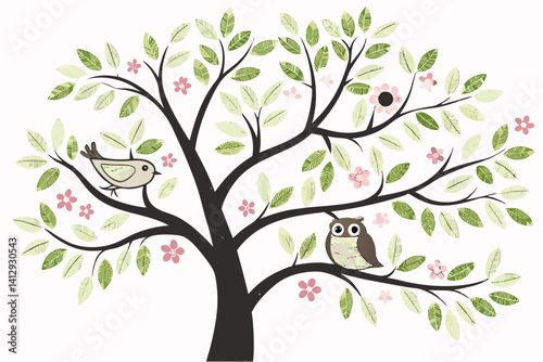 tree, nature, leaf, tree branch, spring, vector, silhouette, illustration, plant, art, design, season, flower, summer, floral, autumn, leaf, green, decoration, nubes, symbol, environment, image, love, trunk