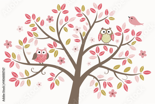 tree, nature, leaf, spring, vector, flower, tree branch, art, illustration, plant, floral, cherry, blossom, pink, nubes, design, silhouette, summer, love, season, beauty, decoration, symbol, bloom, leaf