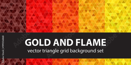 Triangle pattern set Gold and Flame. Vector seamless geometric backgrounds