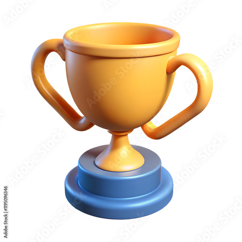 trophy cup 3D icon illustration png, win trophy png, golden trophy cup png "Golden Trophy Cup with Dual Handles on Blue Base – 3D Illustration"