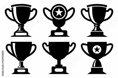 trophy icon set line art silhouette vector illustration