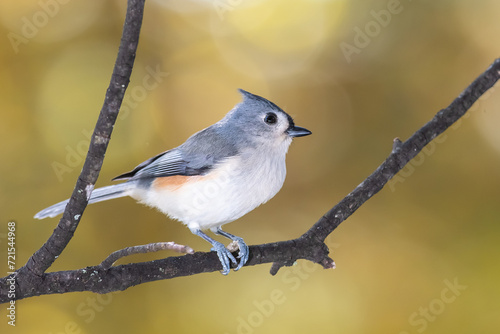 autumn, fall, yellow, gold, tufted, titmouse, grey, white, crest, songbird, perched, tree branch, tree, limb, sitting, resting, bird, animal, north america, wild, wildlife, nature