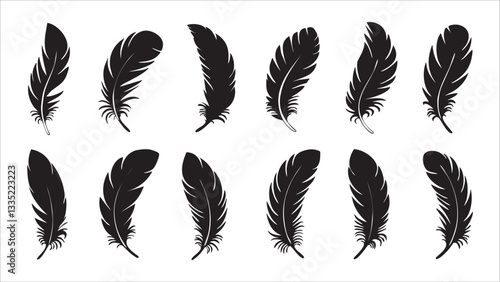 feather, feather, silhouette, silhouette, black, bird, bird, quill, quill, wing, wing, nature, design, element, element, graphic, graphic, vector, illustration, illustration, icon, icon, set, collection, stylised, simple, elegant, vintage, retro, pattern, texture, symbol, writing, light, dark, artistic, aesthetic, image, clip art, isolated, background, white, wildlife, avian, plumage, botanical, decor, decoration