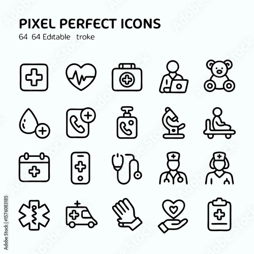 medicals, icon, website, pixel, honed, set, design, health care, symbol, collection, health, hospital, doctor, nurse, pharmacy, care, treatment, laboratory, emergency, stethoscope, pill, nubes, ambulance, syringe, thermometer, prescription, first aid, microscope, dental, blood pressure, bandage, surgery, wheelchair, x-ray, magnetic resonance imaging, vaccine, virus, infection, disease, prevention, diagnosis, research, medication, anatomy, patient, medical equipment