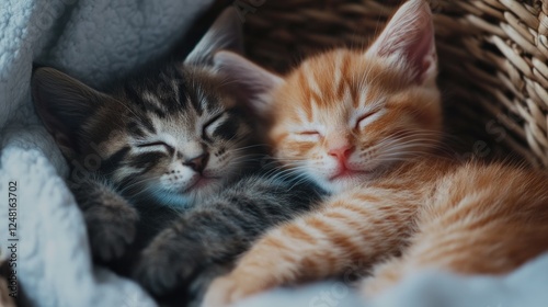 Two Adorable Kittens Sleeping Peacefully in a Cozy Basket