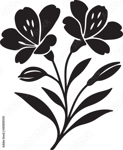 Two alstroemeria flowers silhouette vector, Floral black and white illustration