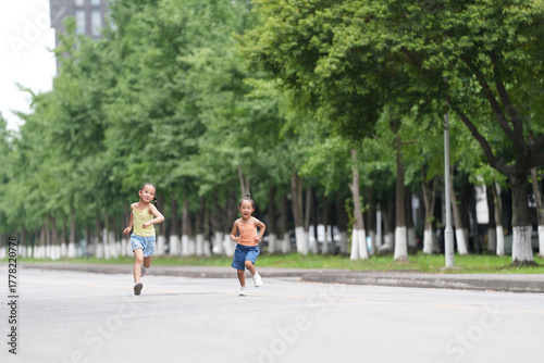 active, activity, carefree, chinese, cute, day, energy, exercise, fun, happy, healthy, joy, joyfulness, leisure, lifestyle, love, nature, outdoors, park, playful, road, run, smile, summer, together, tree