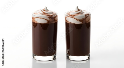 chocolate, drink, beverage, glasses, whipped cream, dessert, sweet, refreshment, treat, indulgence, cocoa, mocha, latte, hot drink, cream, froth, delicious, tasty, isolated, white background, studio shot, closeup, food, liquid, cold, hot, caffeine, sugar, epicure, presentation, style, luxury, minimalist, modern, elegant, still life, nourishment, energy, favor, aroma