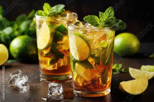 iced, tea, drink, lime, mint, refreshing, cocktail, summer, beverage, cold, glasses, ice, citrous, fruit, healthy, delicious, tasty, summer, receipe, ingredient, brown, sweet, cool, drink, tropical, smooth, flavorful, party