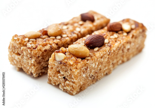 snack bar, healthy snack, food photography, white background, closeup, delicious, tasty, sweet, crispy, crunchy, almond, sesame seeds, nut, oatmeal, brown, gold, rectangular, isolated, studio shot, food, snack, epicure, bakery, confectionery, healthy eating, diet food, nourishment, homemade, receipe, cooking, photo