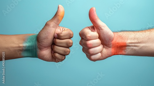 Two Hands Giving Thumbs Up with Colored Bands