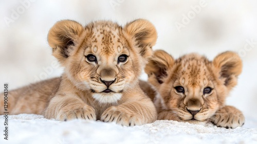 Two Lion Cubs in Snowy Landscape; Adorable Wildlife
