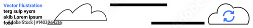 Two minimalistic cloud icons connected by bold lines, with one showing a reload cycle. Ideal for cloud computing, data transfer, file sharing, backup, networking, automation, simple landing page
