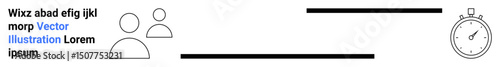 Two outline figures representing teamwork and lines conveying connection, accompanied by a stopwatch symbolizing time. Ideal for productivity, collaboration, project planning, goal setting, timing