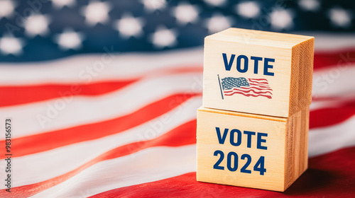 wooden, block, word, vote, election, red, white, blue, american, flag, america, patriotism, us, government, politic, national, presidential, president, campaign, ballot, star, copy space, copy space, us, 2024, symbol, united, democracy, illustration, candidate, banner, signs, badge, icon, stripes, democratic, republican, choice, party, november, decision, poster, design, freedom, state, buttons, concept, primary, top