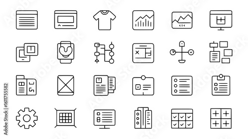 line art, illustration, web design, graphic design, design element, icon, set, collection, black-and-white, monochrome, minimal, simple, clean, vector, graphic, design, layout, website, application, technology, digital, online, workflow, process, chart, diagram, checklist, grid, form, t-shirt, responsive, mobile, desktop, development, programming, datum, analysis