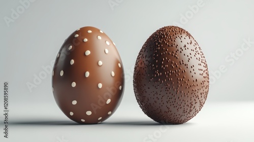 chocolate, egg, easter, realistic, celebration, holiday, design, decoration, dessert, sweet, epicure, festive, pattern, smooth, detailed, texture, rich, brown, sprinkle, speckled, decorative, seasonal, luxury, treat, delicious, confectionery, artisan, crafted, elegant, glossy, shiny, white, dot, contrast, unique, creative, gift, indulgence, traditional, timeless, culinary, delight, artistic, intricate, appealing, tempting