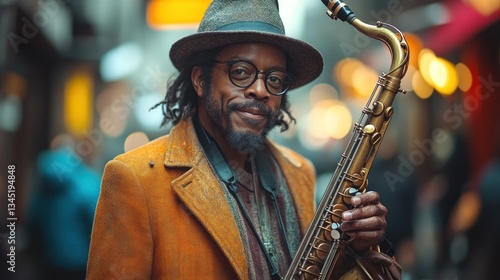 music, jazz, saxophone, musician, man, urban, portrait, happy, smile, black, brown, brown skin, artist, music festival, instrument, performance, street, alley, city, city landscape, outdoors, closeup, culture, people, street art, entertainment, lifestyle, photo, photo, image, music lover, professional, black man, man