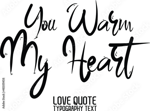 Valentine quote You Warm My Heart in a trendy stylish font calligraphic style
