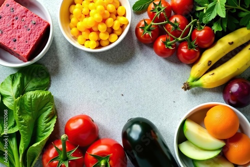 Variety of healthy foods untouched on a table , harmony, lifestyle, healthy eating