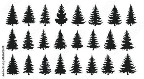 tree, silhouette, pine, fir, spruce, detailed, resource, clip art, scrapbooking, silhouette, artistic, image, graphic, artwork, ornament, drawing, tall, variety, isolated, growth, seasonal, vignetting, shape, sticker, different, print, set, badge, white, element, collection, modern, art, abstract, minimalist, clean, scene, symbol, poster, black, card, outdoors, timberland, holiday, style, design, evergreen, outline, banner