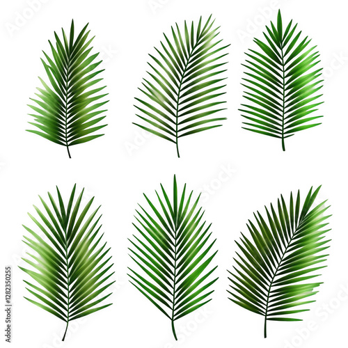 Various Types of Lush Green Palm Leaves Isolated on White Background