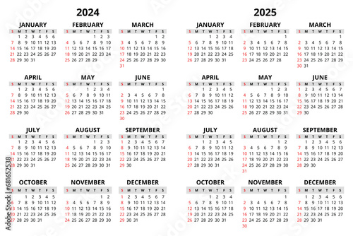 Vector 2024 and 2025 vertical calendar. Modern illustration.