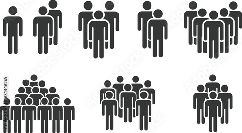 Vector icons of people, group, crowd, team, community, organization, leadership, communication, human network, teamwork, symbol design