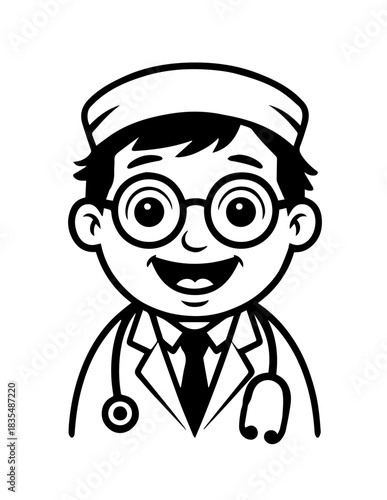 Vector Illustration of a a portrait of a doctor with lines drawing for logo,icon, black and white