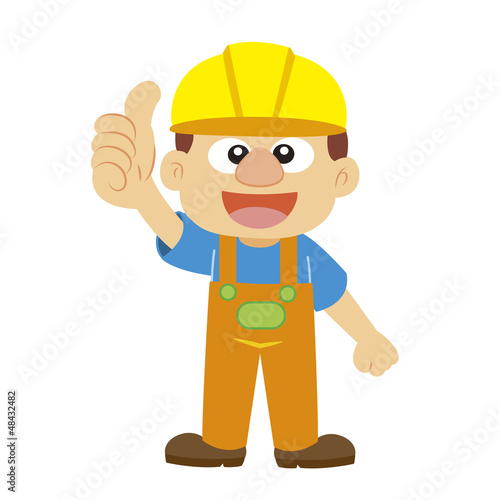 Vector illustration of a builder in yellow helmet