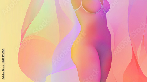 Vector illustration of a woman in a lingerie in 2024-2025 trending colors, modern minimalist style, with a soft gradient background