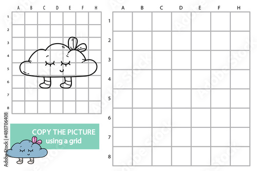 Vector illustration of grid copy picture educational puzzle game with doodle cloud pillow