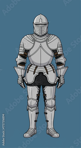 vector, knight, armoring, helmet, gauntlet, full suit, mediaeval, historical, fantasy, warrior, battle, combat, character, human, standing, structured, geometric, detailed, stylised, monochrome, grey, black, white, concept, branding, web, print, marketing, gaming, cosplay, vintage, crisp, editable, versatile, professional, digital, commercial, modern, elegant, premium, customizable