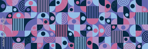 Vector seamless pattern, 60s bauhaus abctract geometric background with blue and purple colors