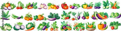 Vector vegetables icons set in cartoon style. Collection farm product for restaurant menu, market label.